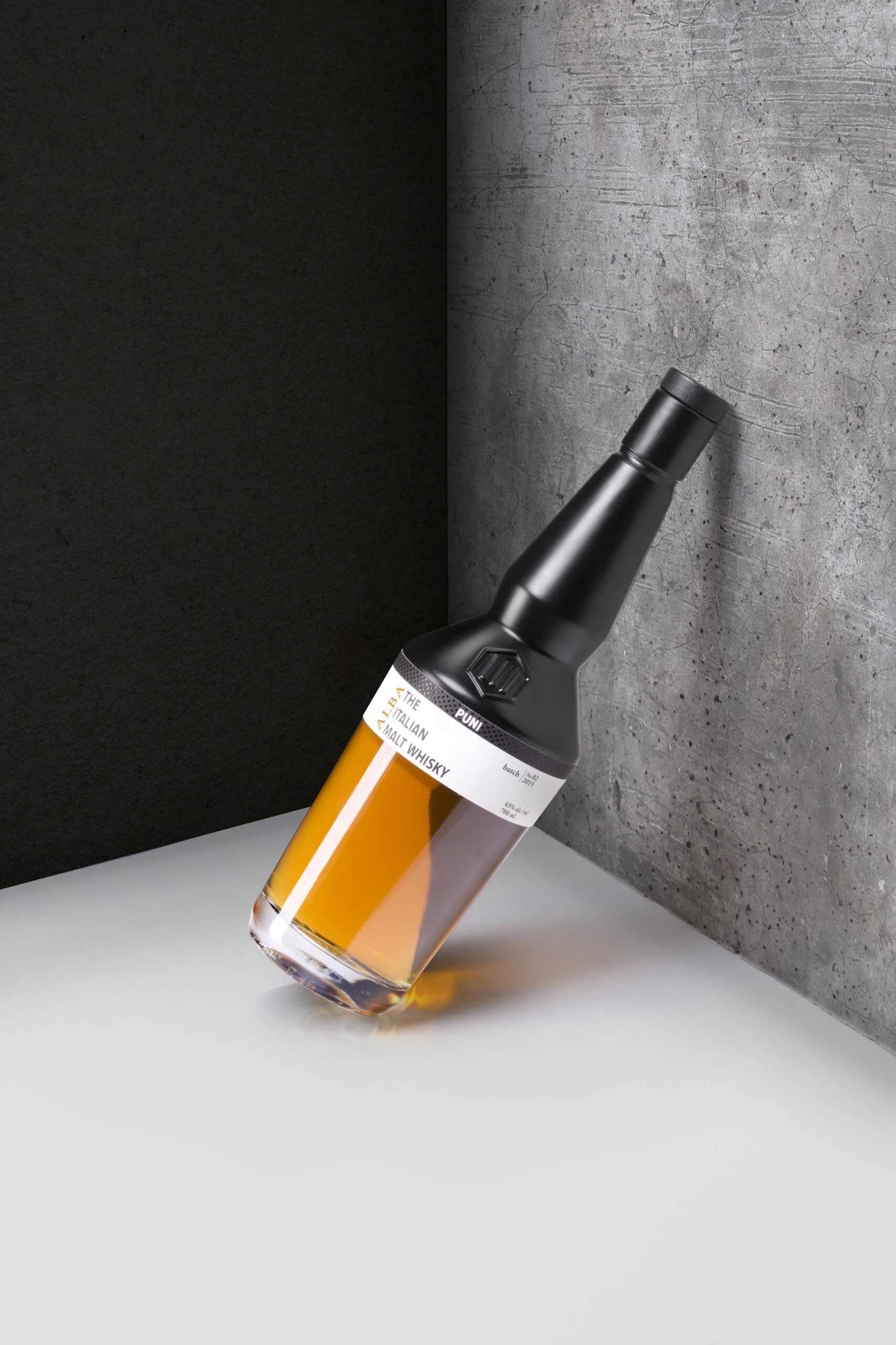 Bottle and Packaging Design for Puni, an young and independent distillery producing the first Italian malt whisky. The design of the bottle transfers the traditional pot still shaped whisky bottle in to the modern age by using a clean and puristic handwriting. Over the years PUNI released several special editions like the Puni ARTE or the Puni AURA. The custom label and packages are designed by ZANZOTTI.